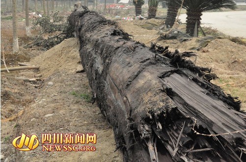 烏木被打撈上來后,被放置在岷江大橋頭的一廠房院壩內(nèi)?!盀榱送咨瓢仓脼跄?,我們專門為它量身定做了一個(gè)‘窩’,將烏木放置進(jìn)去,然后蓋上土,用水潑濕,以保證烏木的濕度。”工作人員稱。