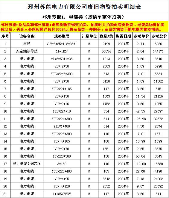關(guān)注微信公眾號(hào)受委托,我公司將通過中國拍賣行業(yè)協(xié)會(huì)網(wǎng)絡(luò)拍賣平臺(tái)以網(wǎng)絡(luò)競價(jià)的方式公開拍賣廢舊電力物資一批,主要包括:電纜、導(dǎo)線、廢舊鋼材、鋼芯鋁絞線、金具、雜品、機(jī)具、空調(diào)、辦公設(shè)備等。