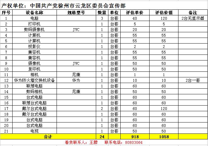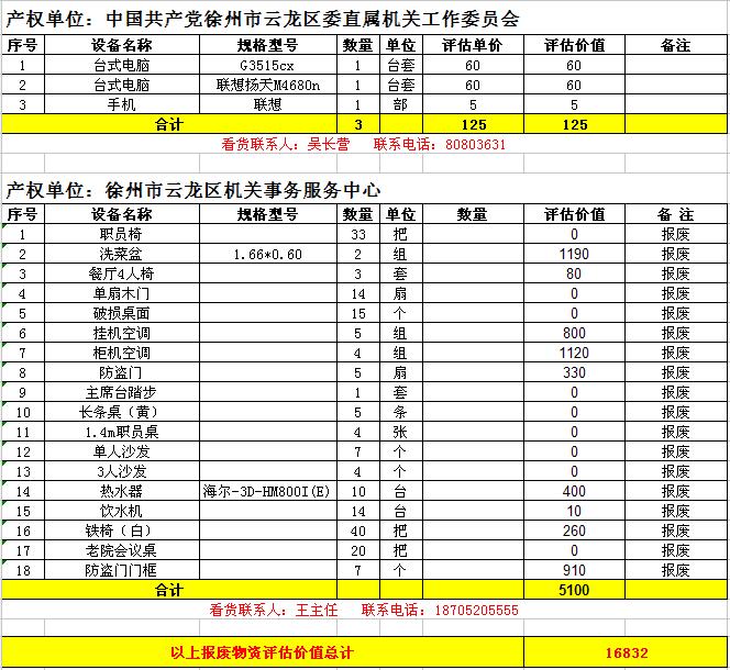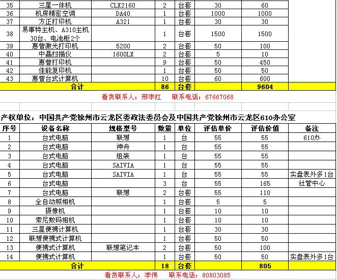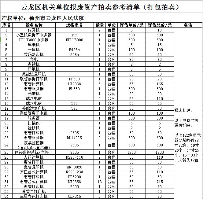 1. 云龍區(qū)數(shù)家單位廢舊辦公設(shè)備一批,主要包括:廢舊電腦、復(fù)印打印機(jī)、攝像機(jī)、空調(diào)、辦公家具等。