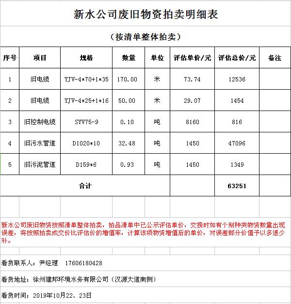 2. 新水資產(chǎn)公司所有的廢舊電纜、污水管等。
