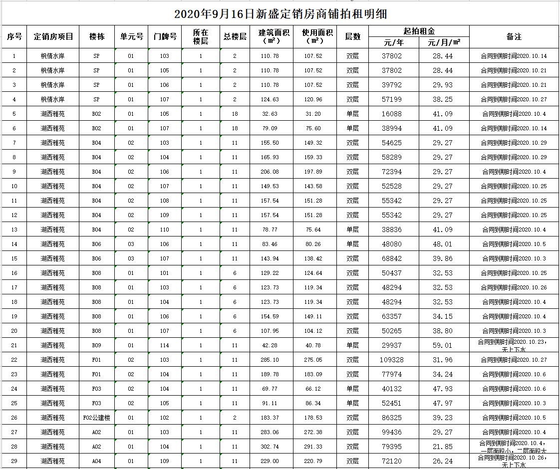 關注微信公眾號我公司受委托,定于2020年9月16日9:30在徐州云泉山莊第七會議室公開拍租以下社區(qū)房屋:楓情水岸、湖西雅苑、嘉和雅苑、祥云路街坊中心二層等。拍租房屋共39處,商鋪面積分別約為數(shù)十至數(shù)百平米,祥云路街坊中心二層約2490平米。社區(qū)商鋪租期三年,祥云路街坊中心二層辦公房租期五年。詳情請登錄本公司網(wǎng)站或微信公眾號查詢。